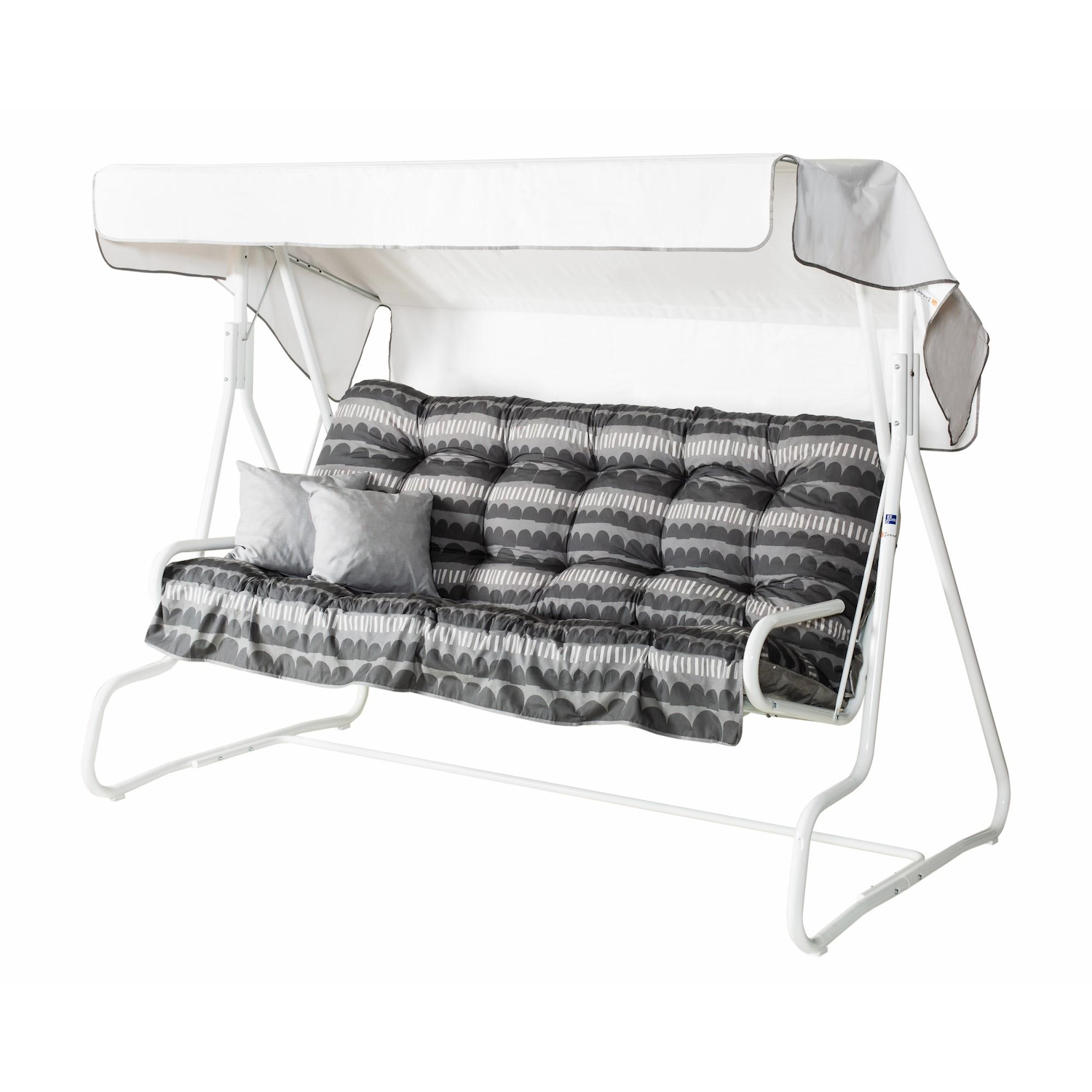 Korkeaselkänojainen 3 hengen istuttava DeLuxe keinu katoksella ja pehmustesarjalla. Useita värejä.